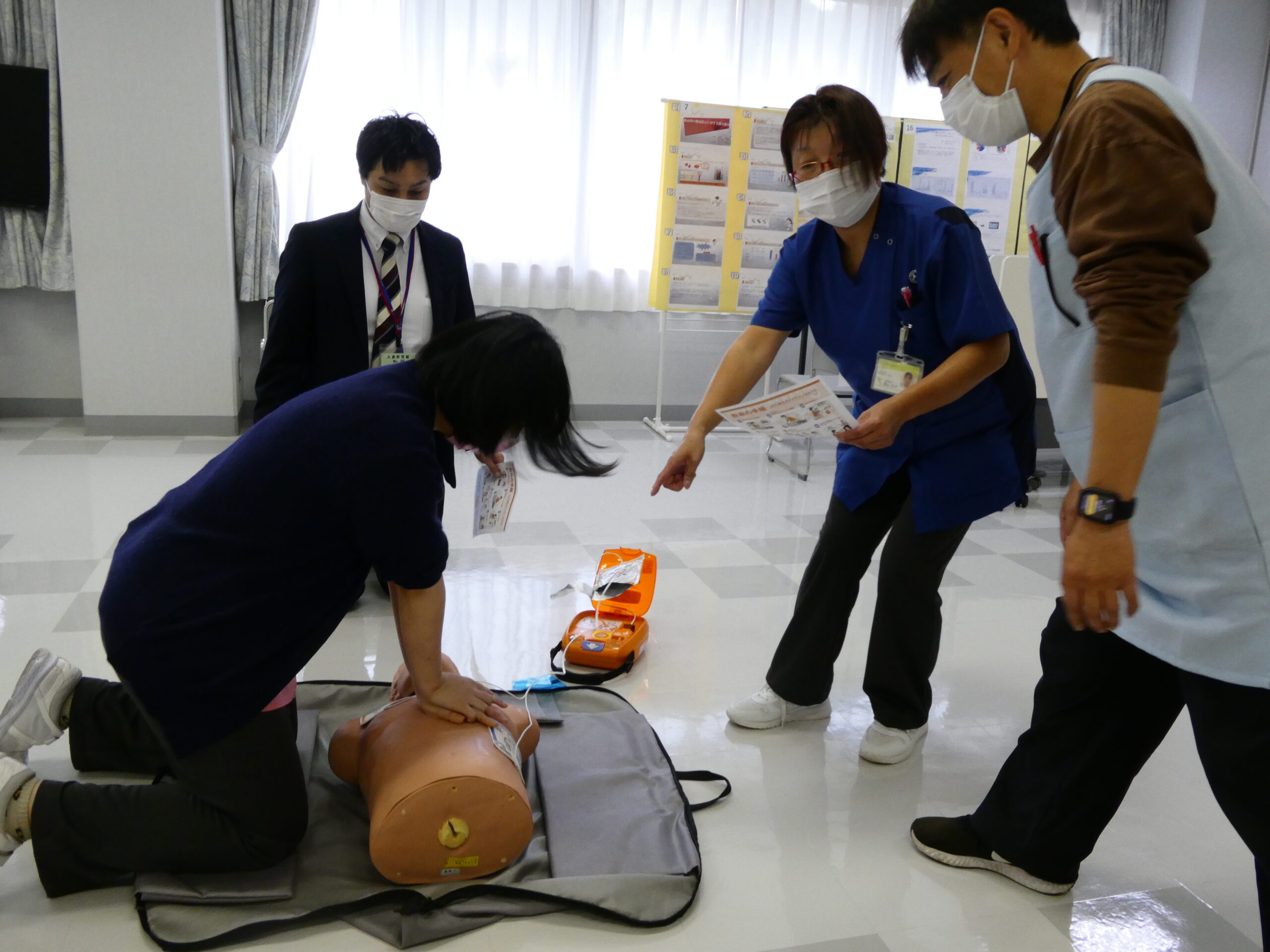 - 令和7年11月5日~16日 緊急時に対応できるよう多数の職員が、AED使用の訓練を実施しました。